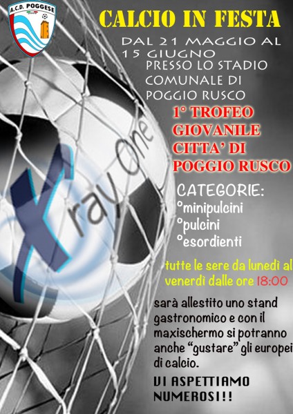 MANIFESTAZIONI. La società A.C.D. Poggese X Ray One ha sospeso il 1° torneo giovanile “Città di Poggio Rusco” a causa dei recenti terremoti, fino a data da destinarsi. Le gare riprenderanno probabilmente a partire da Lunedì 4 giugno 2012. .